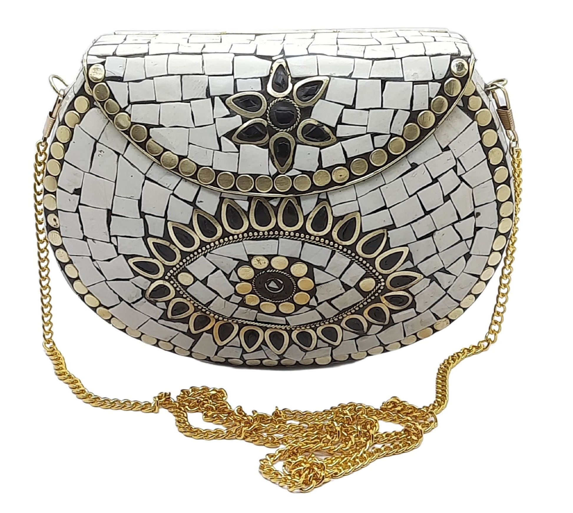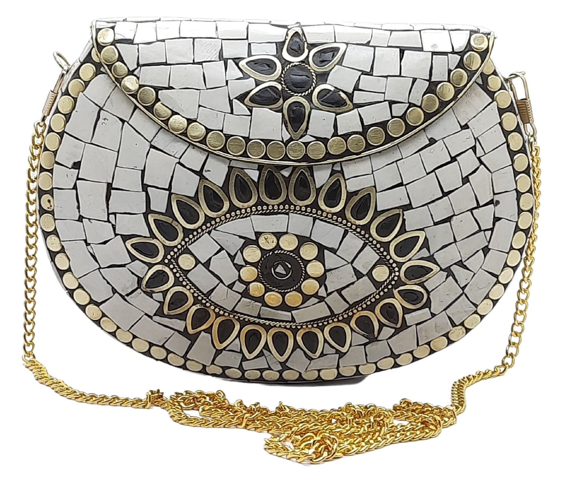- Handmade Metal Clutch cum Sling Bag made by Metal and beautiful stone work in whole bag,