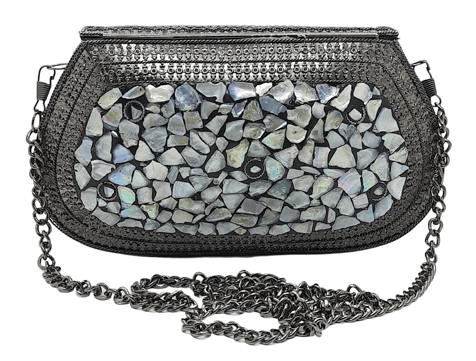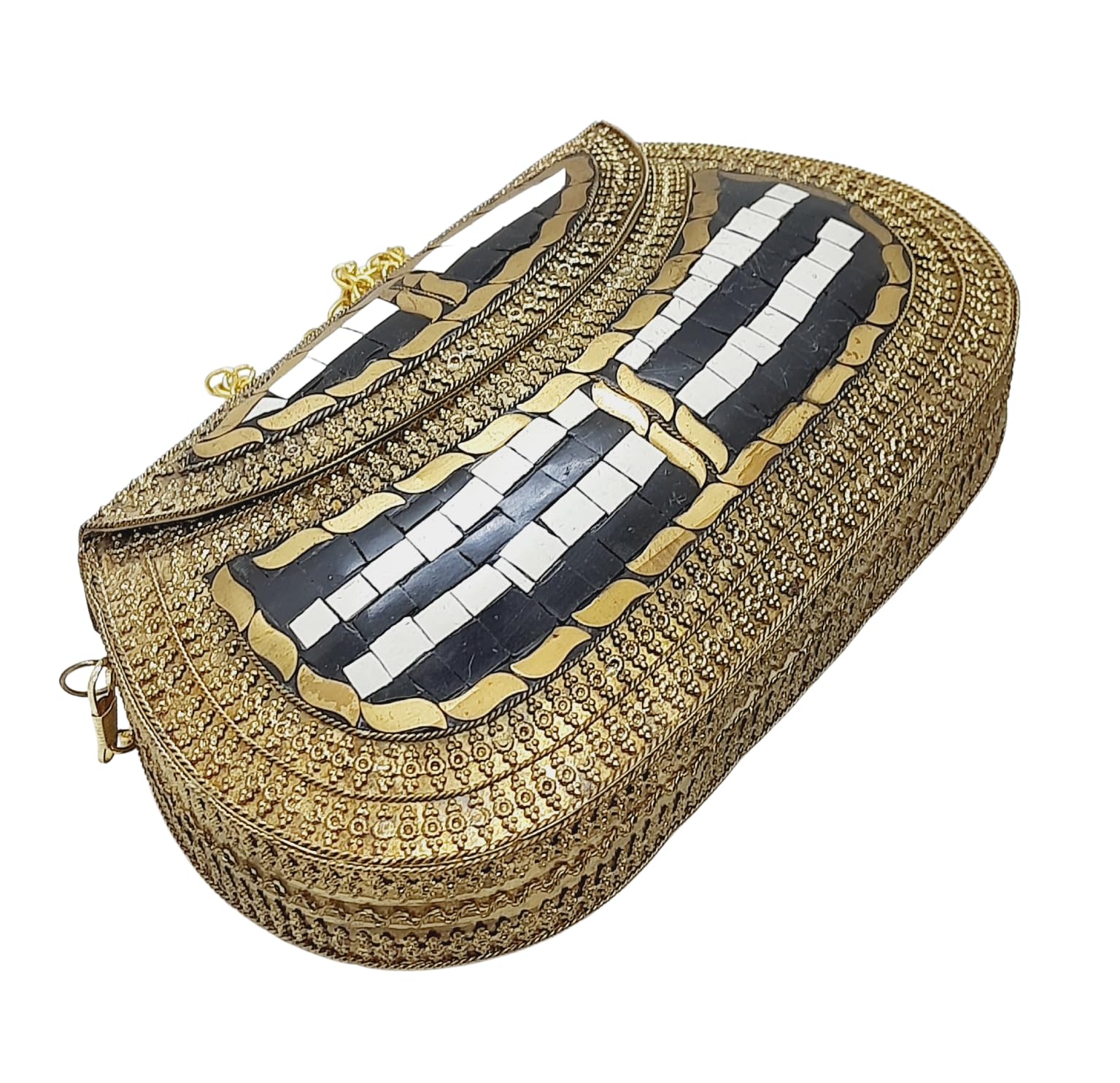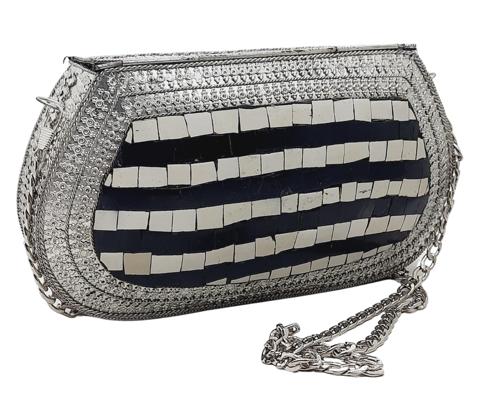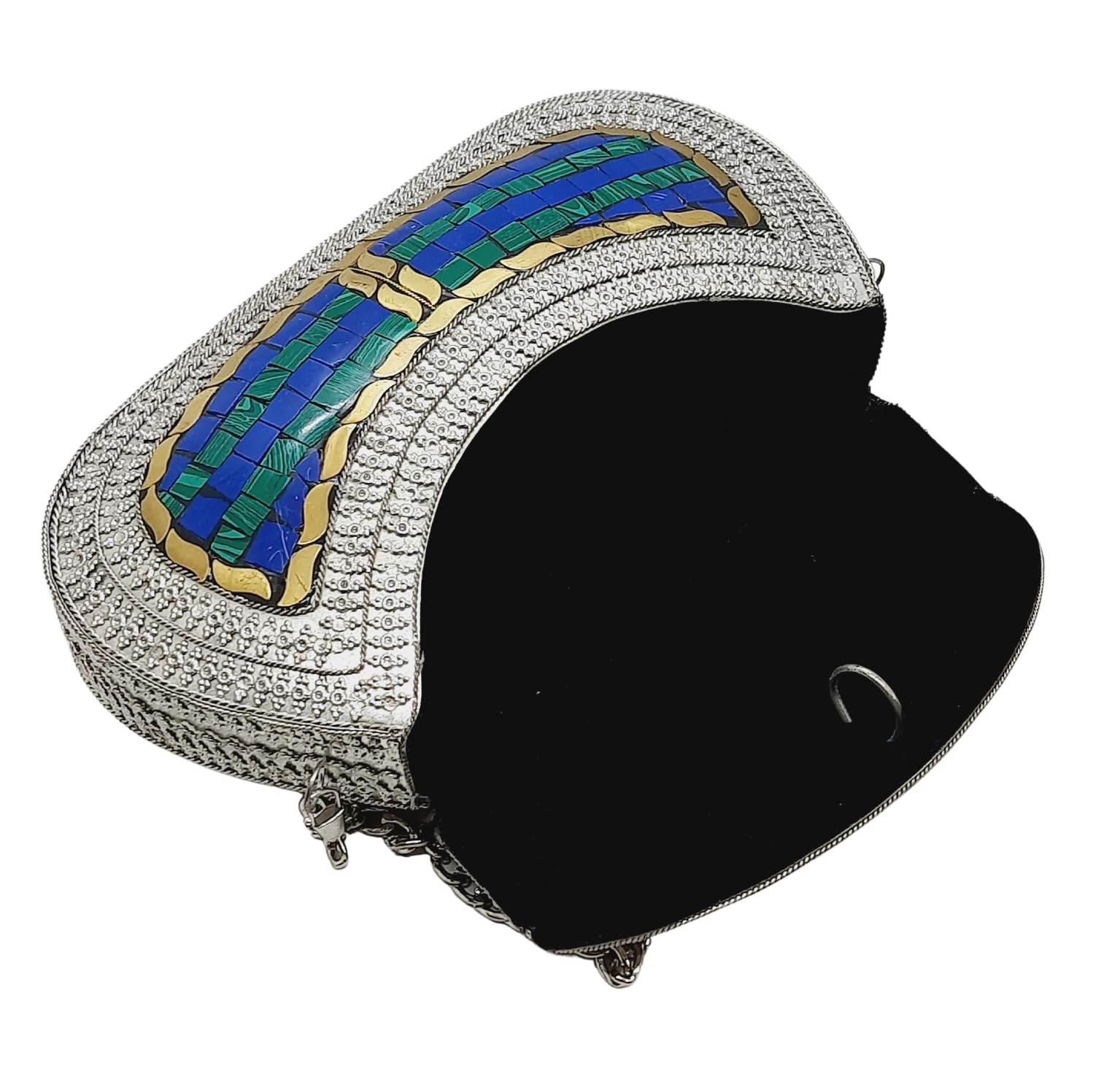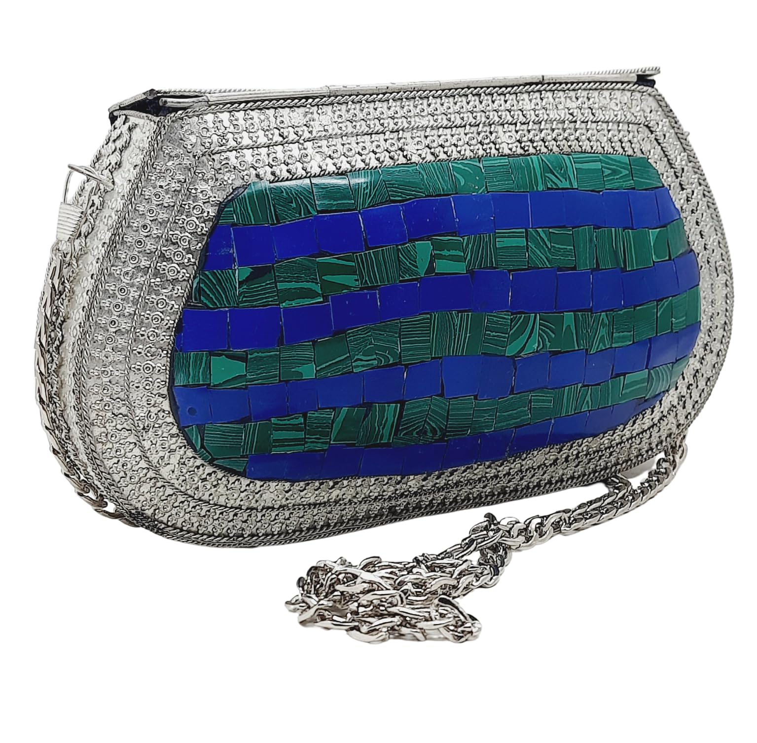 Trend Overseas Handmade Antique Stone Bag Ethnic Clutch - Metal Bag Perfect for Parties, Fits All Cellphone Models