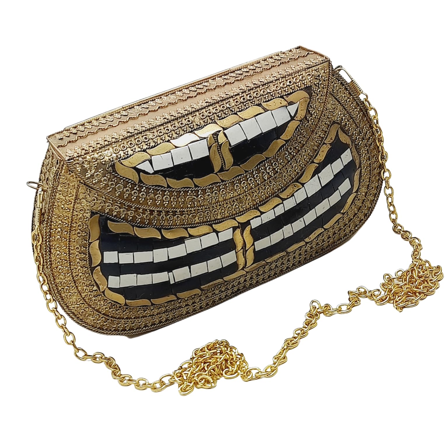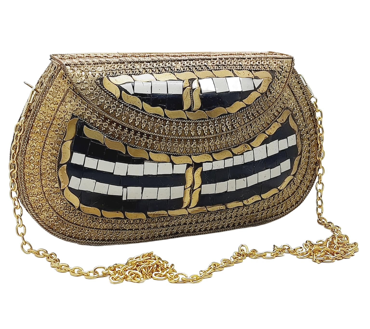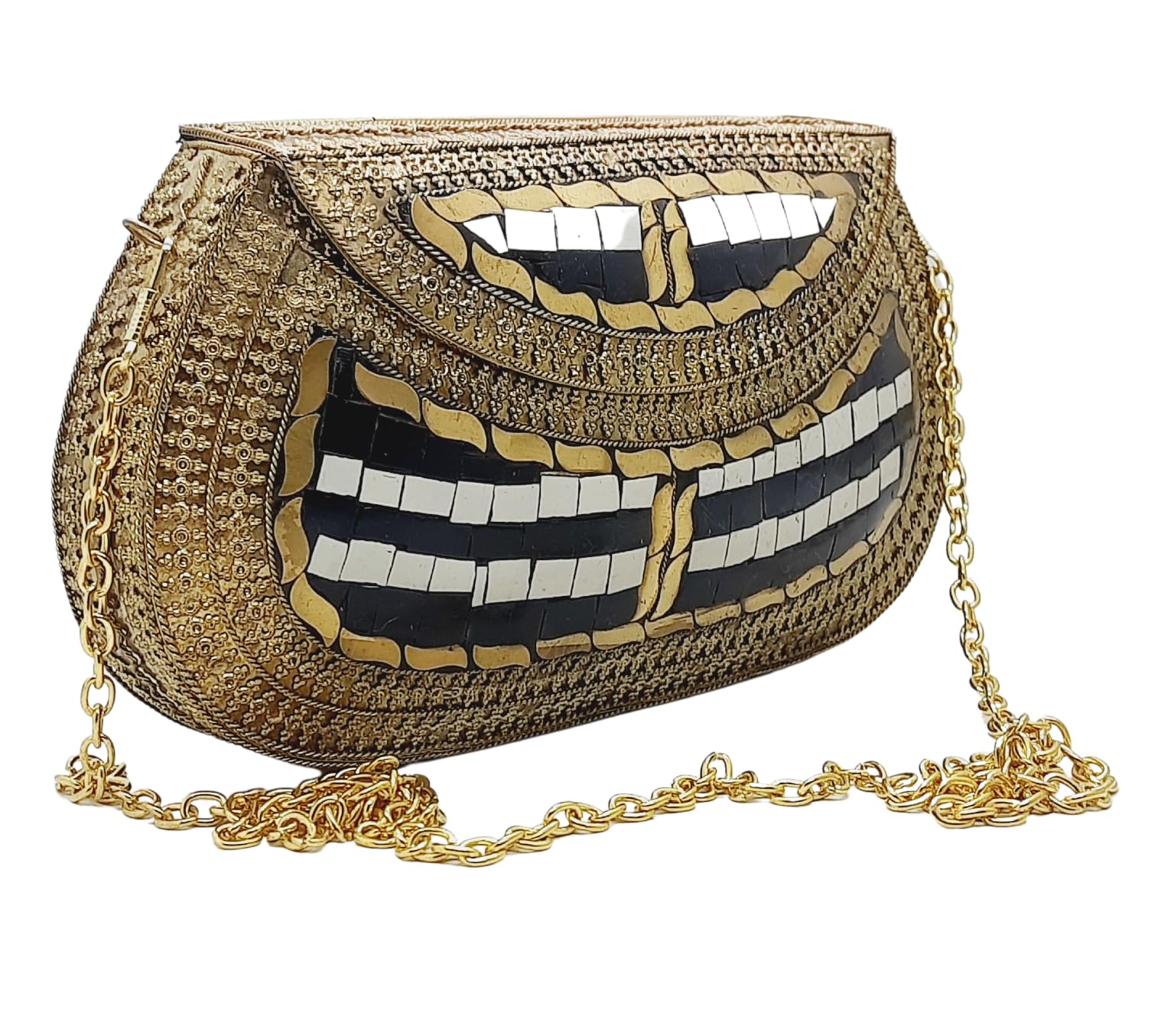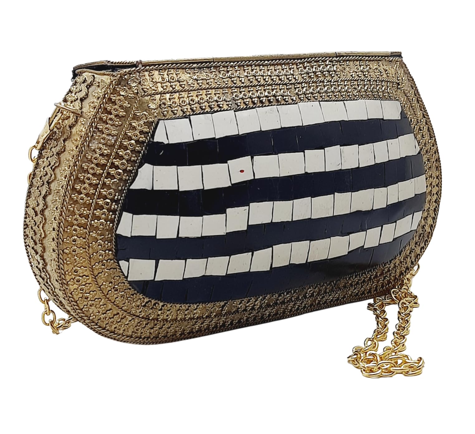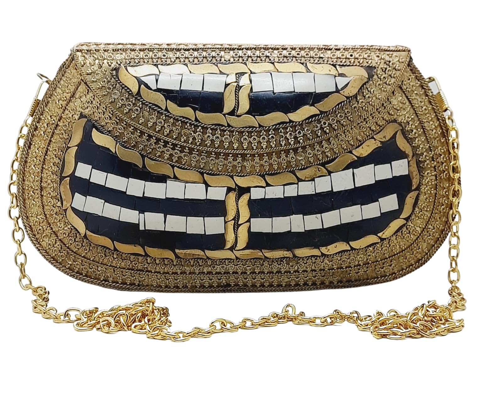 Trend Overseas Handmade Antique Stone Bag Ethnic Clutch - Metal Bag Perfect for Parties, Fits All Cellphone Models