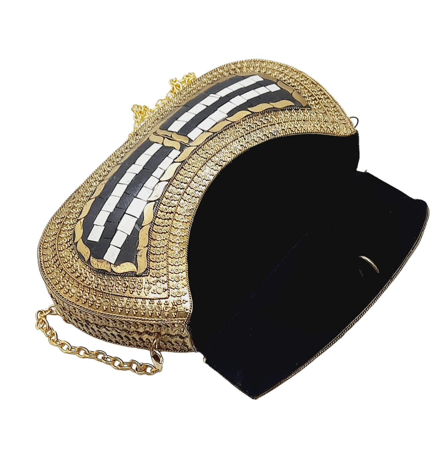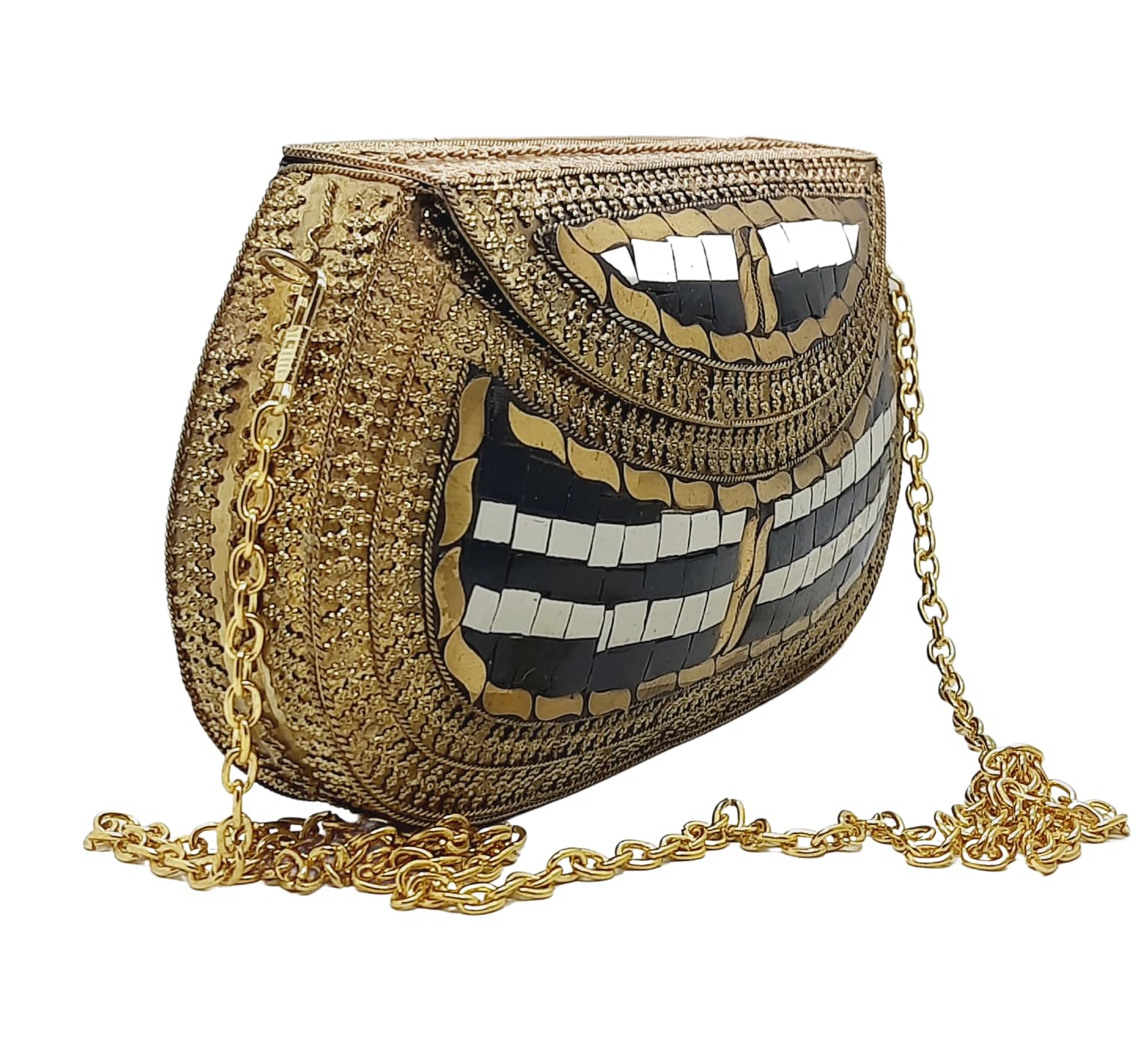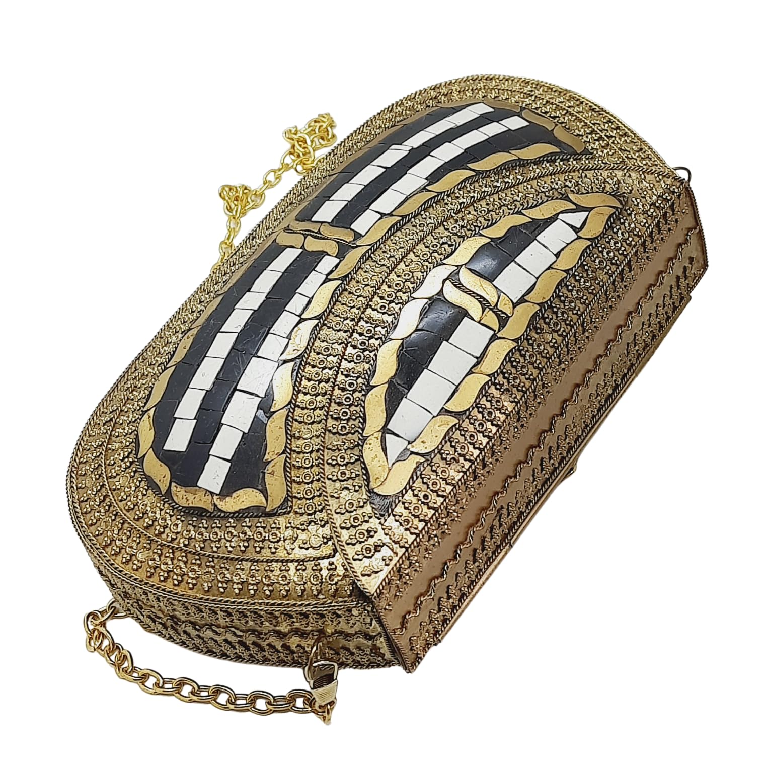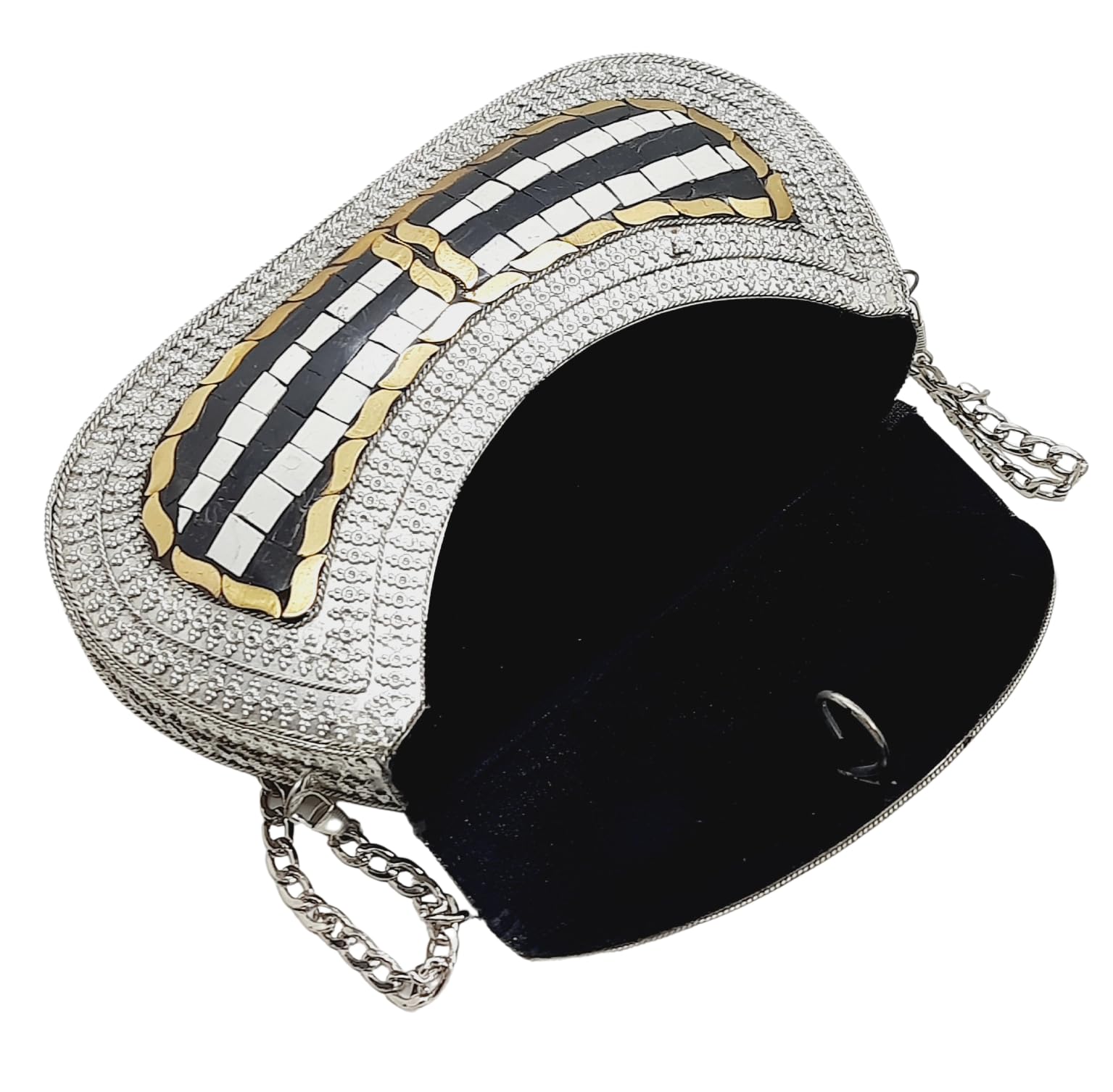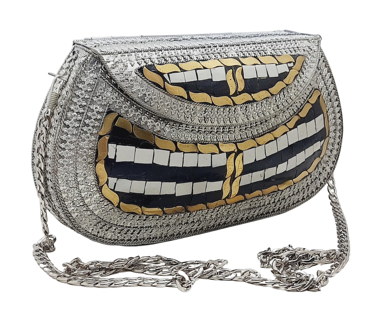 - [HANDMADE CLUTCH] This bag is meticulously handcrafted and made from metal, giving it a unique and antique look. It is also decorated with multi-color stones for added elegance.