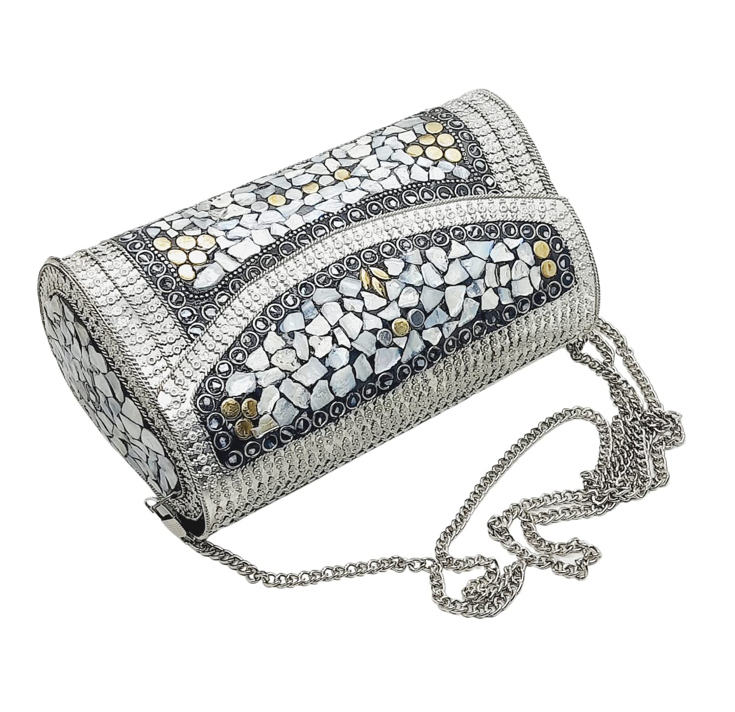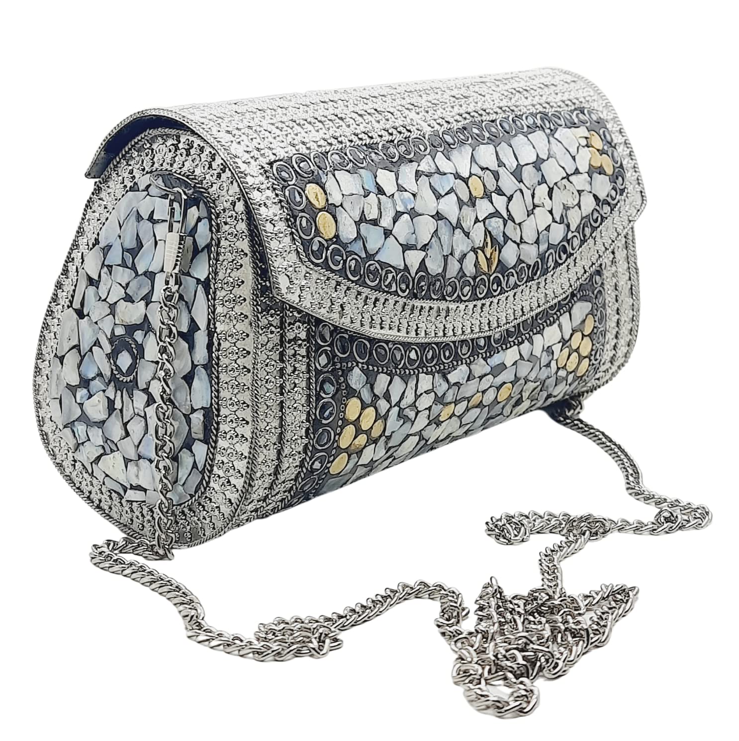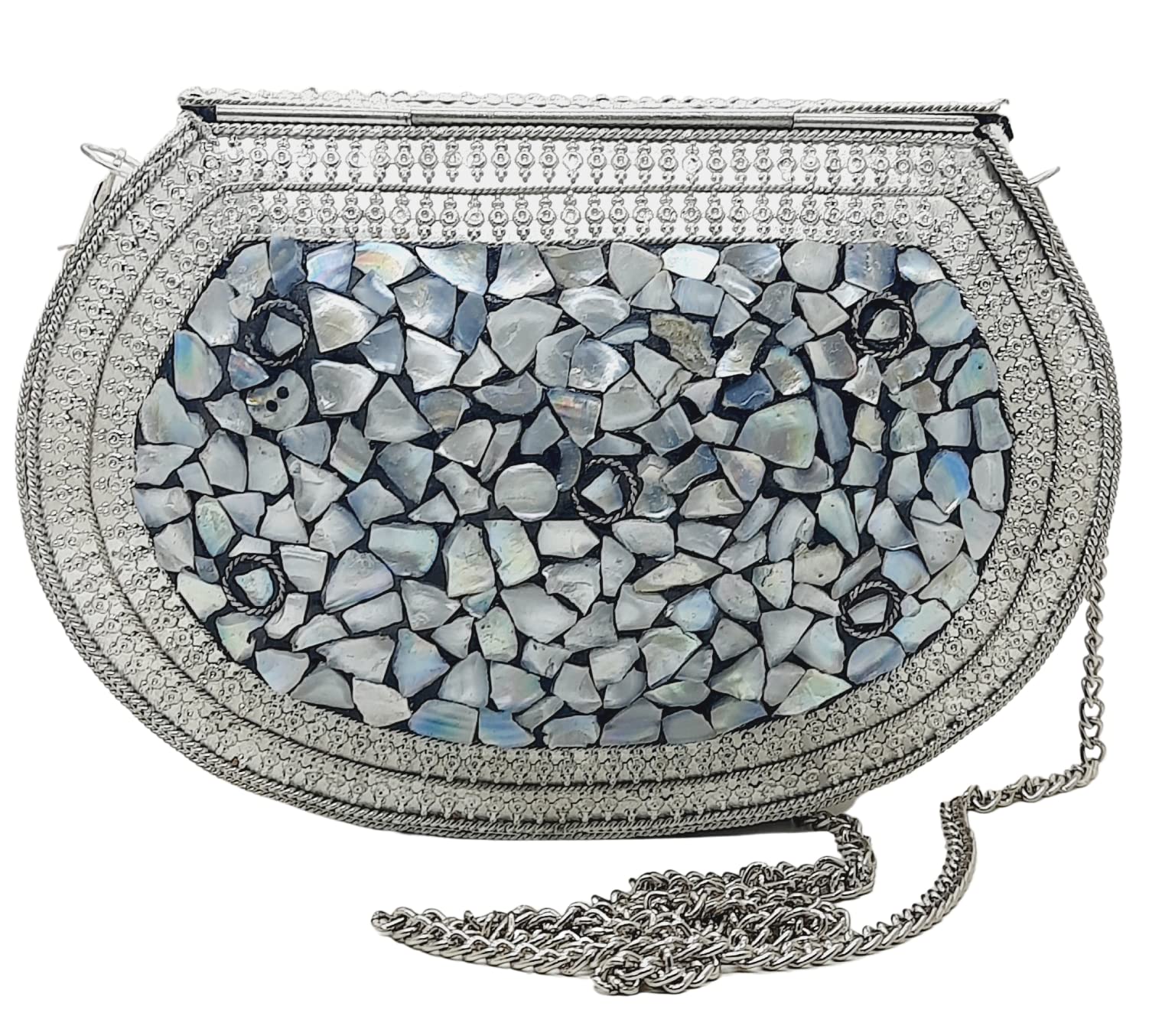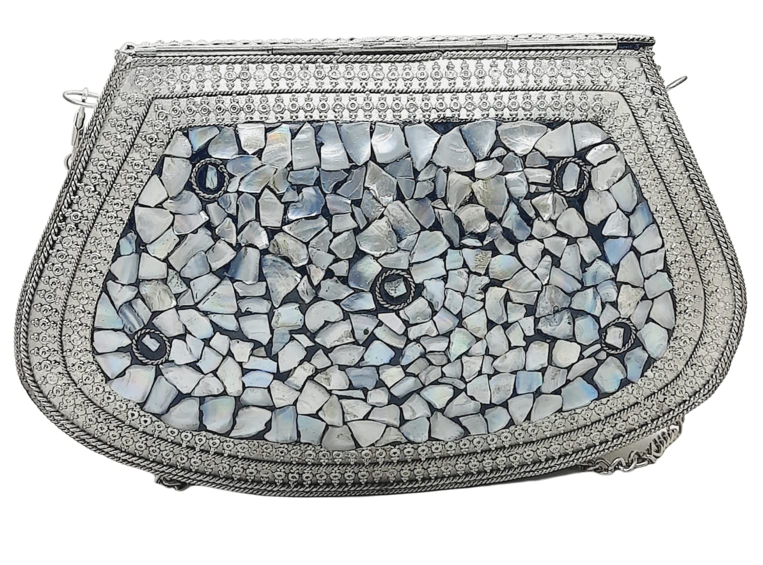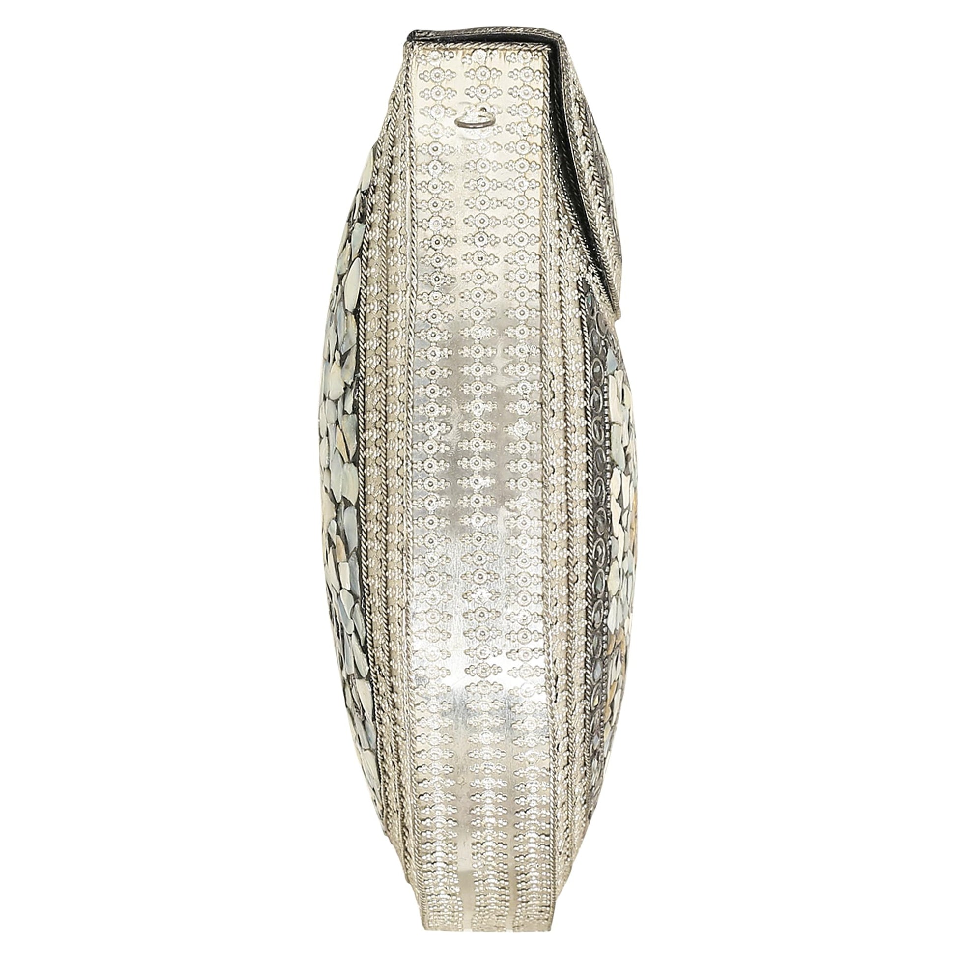 Trend Overseas Handmade Silver Metal Clutch Sling Bag Bridal Party Purse