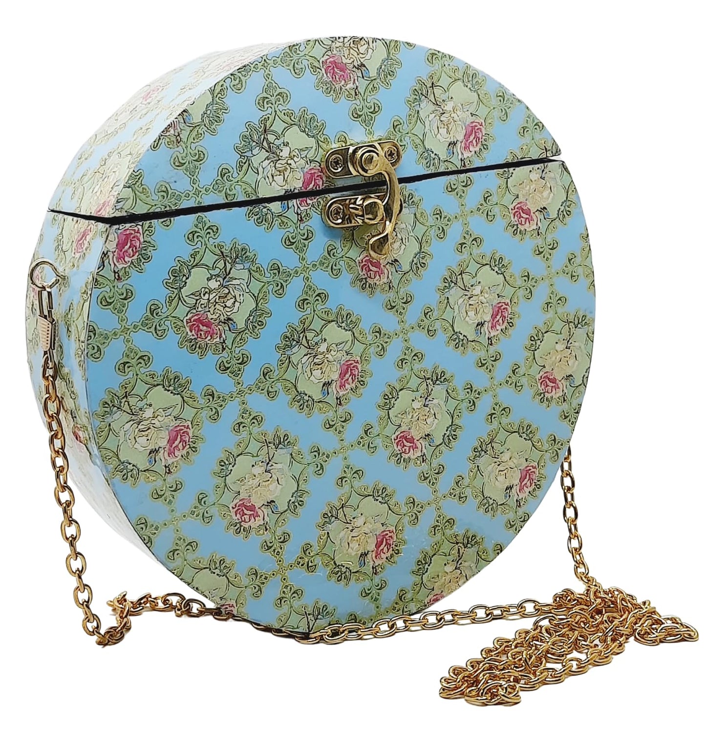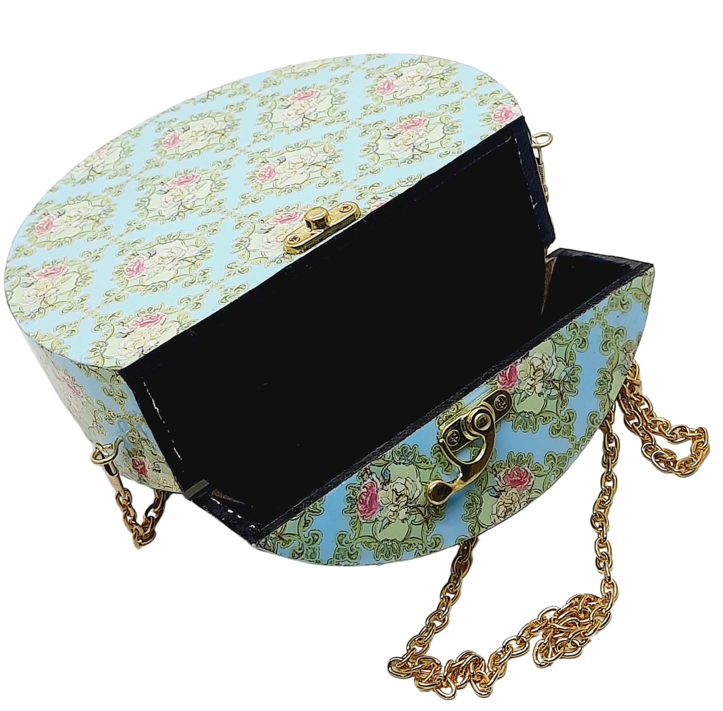 Trend Overseas Handmade Wooden Printed Clutch Crossbody Bag | Detachable Chain | Light Weight | Ethnic Look | Party Bridal Bag