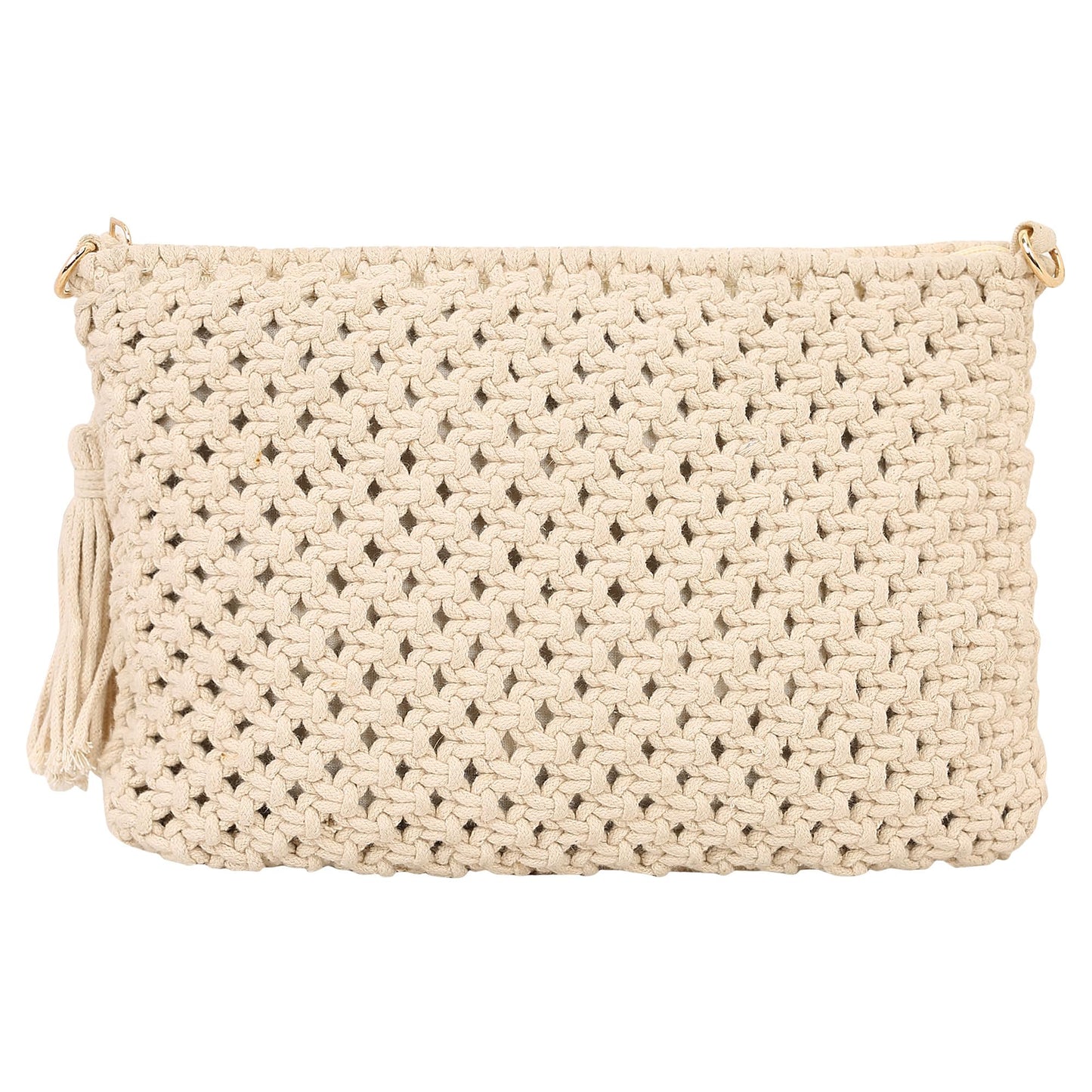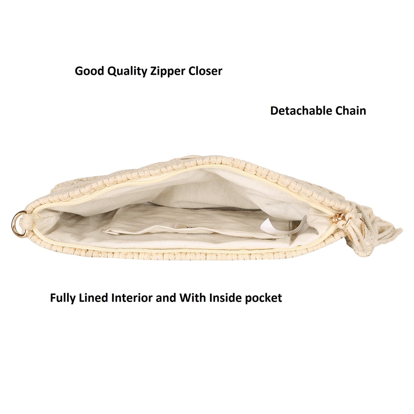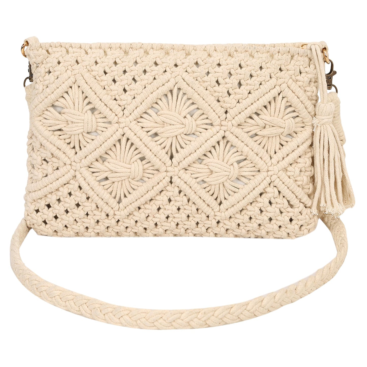 The Trend Overseas Handwoven Crochet Craft Women/Girl Ivory (Off-White) Macrame Bag is a must-have accessory for any fashion-conscious individual. Made of 100% natural cotton ropes, this bag offers a soft and lightweight feel. The handwoven crochet craft gives it a unique and trendy look, making it a standout piece. Size(L*W): 10x7 Inch; Shoulder strap?s drop: 22 Inch?it's detachable and unadjustable, but you can tie it if you feel long.Capacity: The zippered design of this boho bag purse securely stores essentials, enough to hold cash, keys, smart phone, sunglasses, small mirror and more.