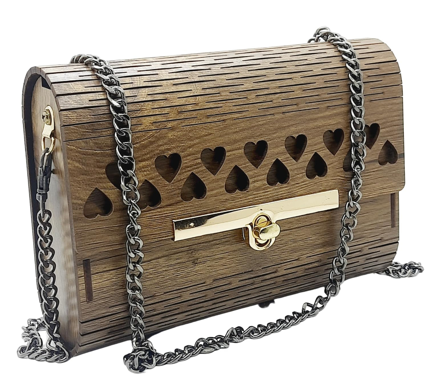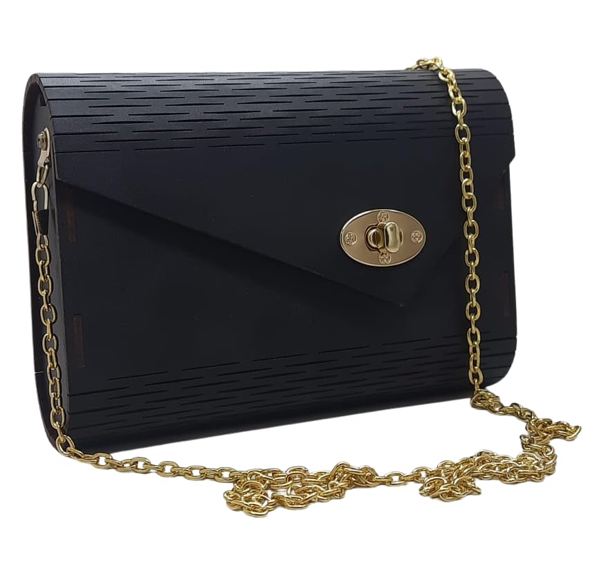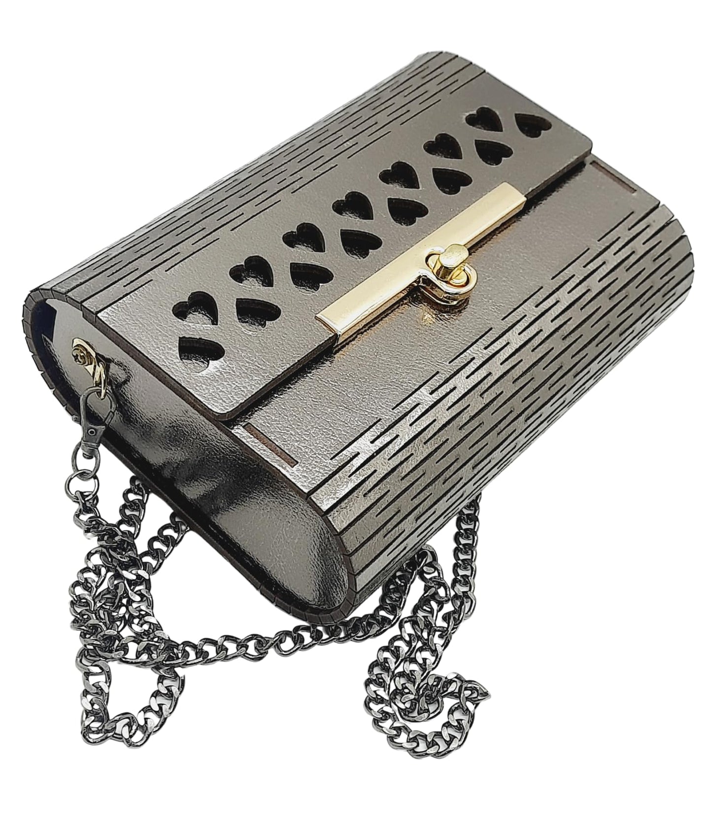 The Women's Clutch Handcrafted Wooden Light Weight Unique Purse Sling Bag is a statement-making accessory for any fashion-forward woman. This clutch features a handcrafted laser cut design that adds a touch of elegance and uniqueness to your outfit. Made from MDF wood, it is both durable and lightweight, making it easy to carry.Comes with detachable Strap Golden and Black Color. The versatile design allows it to be used as a sling bag or a hand clutch, providing flexibility for any occasion. With its compact size, it is just the right size to hold your essentials, and the velvet coated inner side ensures the safekeeping of your belongings. Whether you're attending a party or a special event, this clutch is sure to turn heads and showcase your impeccable style.