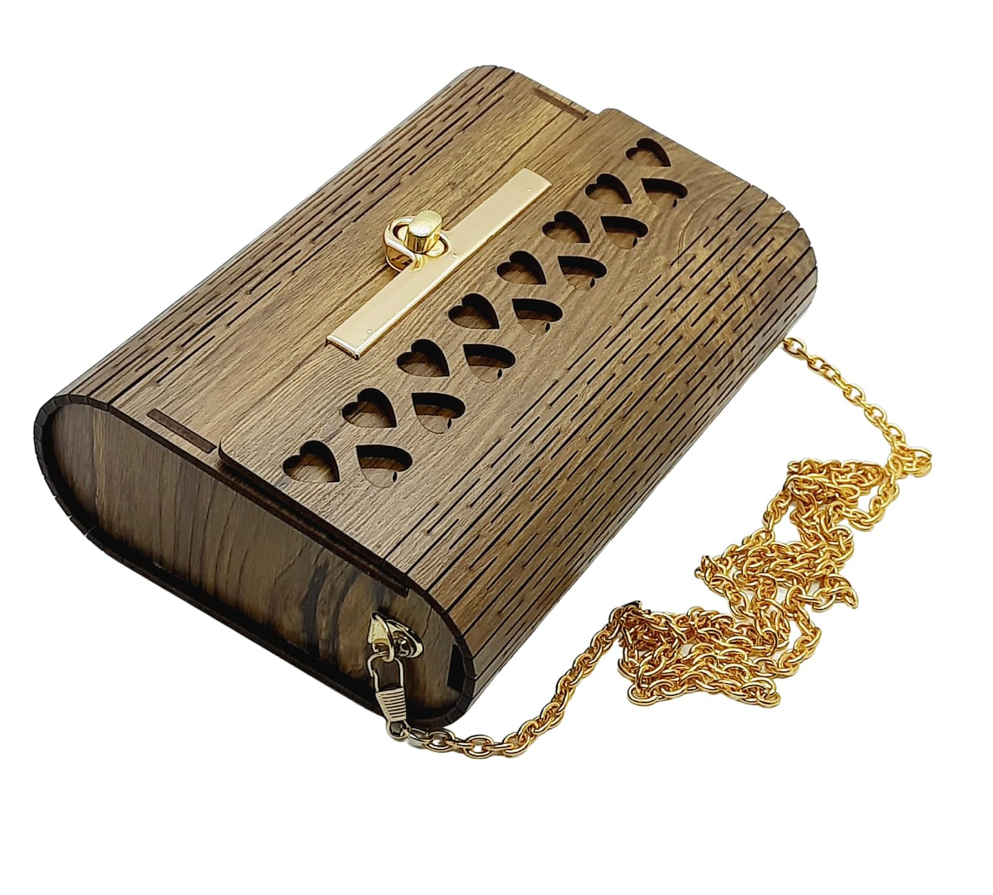 - [HANDCRAFTED LASER CUT DESIGN] This women's clutch is handcrafted with a laser cut design, creating a stylish and fashionable look.The clutch is made from MDF wood, ensuring durability and light weight for easy carrying.