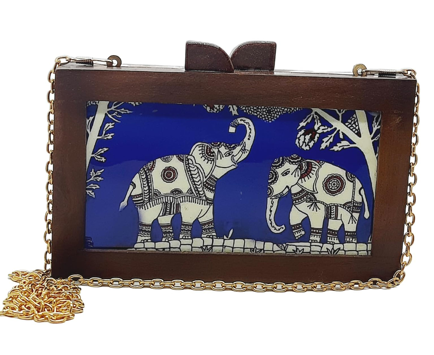 - Handcrafted Laser Cut Stylish Fashionable Wooden Party Wear Sling Hand Bag for women, made to compliment your evening outing attire. This evening clutch will give you a movie star glow at weddings or cocktail party. Keep your accessory collection on trend and unique.