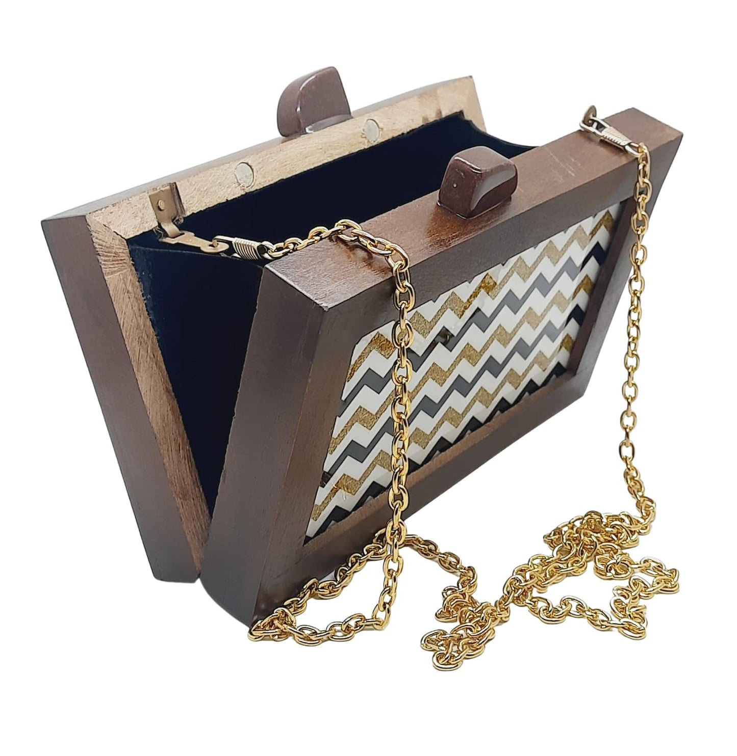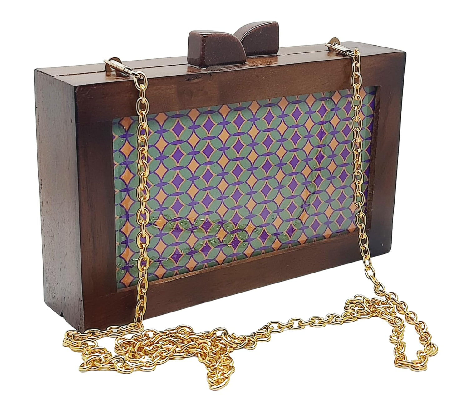 Trend Overseas Women's Wooden Printed Rectangle Ethnic Clutch Bag/Bridal Purse/Handbag_Crossbody Sling Bags Detachable Chain for Bridal, Party Bag